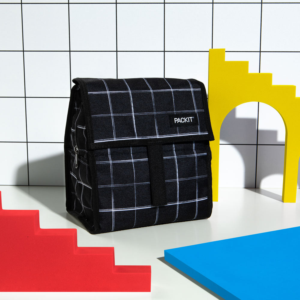 Freezable Lunch Bag, Black Grid